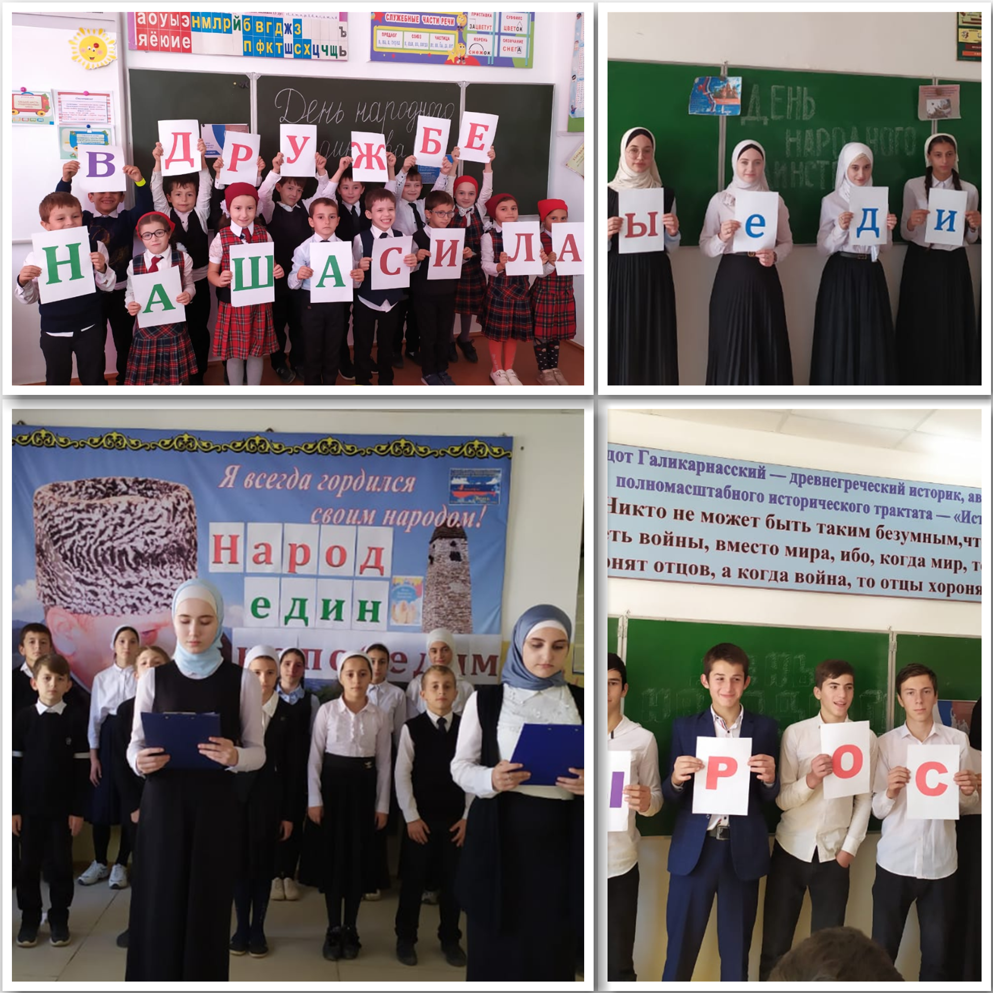 21.10.2019Согласно плана работы школы с 21 октября 2019 года по 26 октября 2019 года в целях популяризации идеи единения многонационального народа Российской Федерации через любовь к Родине, к своему народу, к своей истории, были проведены мероприятия, посвященные Дню народного единств. В мероприятиях приняли участие обучающиеся 1-11 классов.