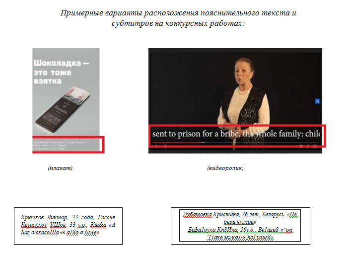 Примерные варианты расположения пояснительного текста и субтитров на конкурсных работах:
