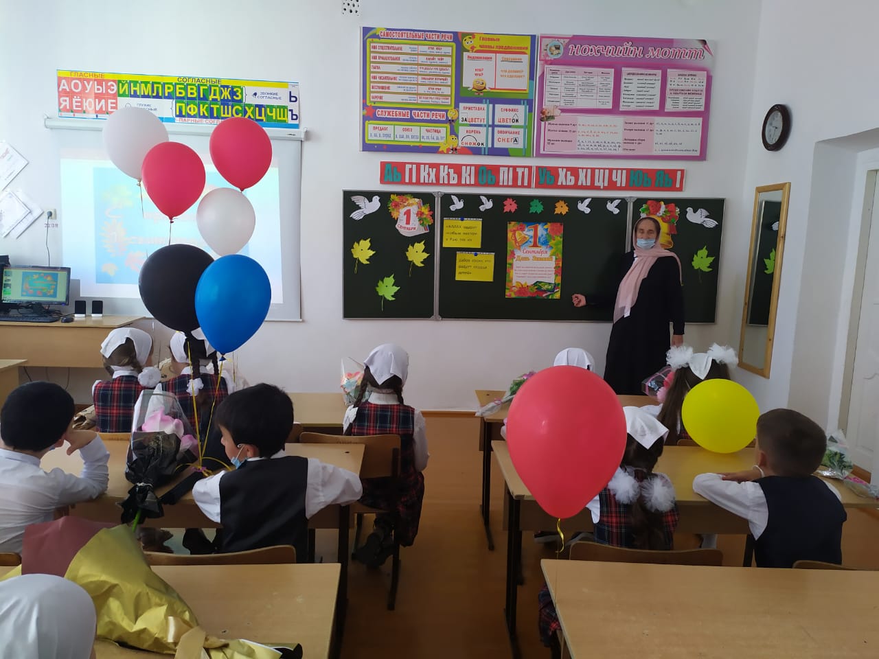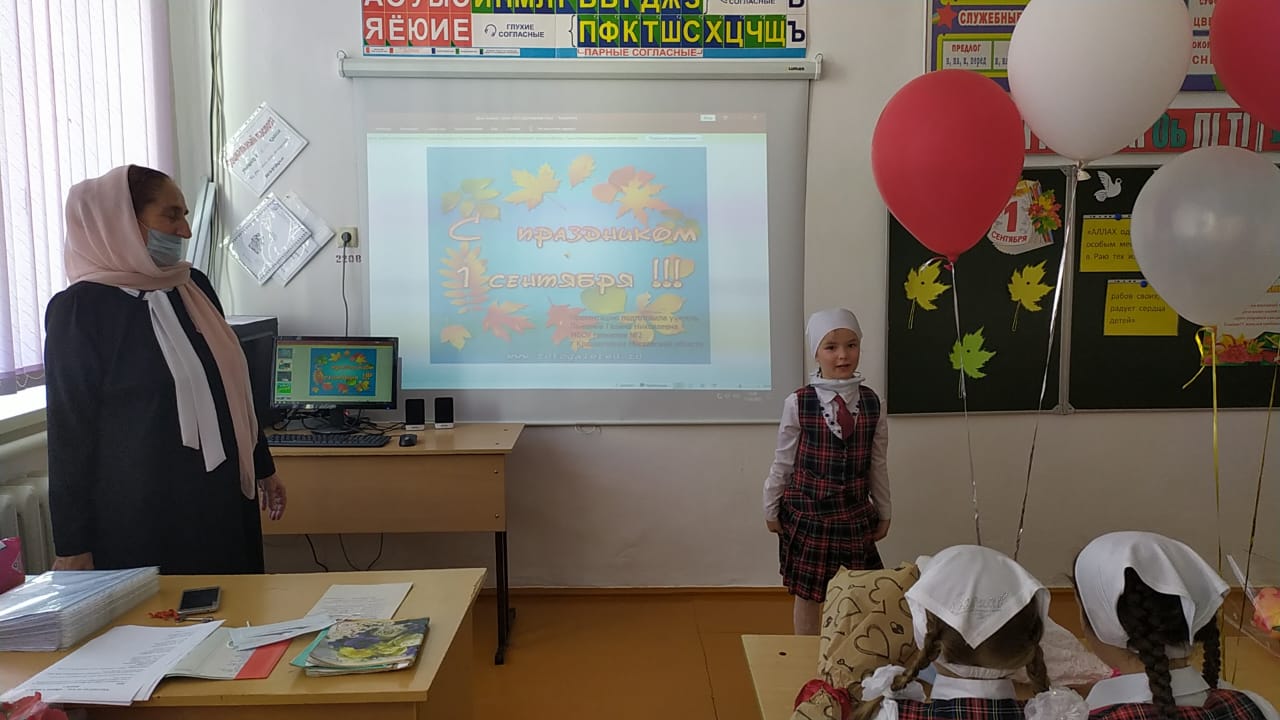 Директор школы Цухаев Бувайсар Ильясович поздравил всех с праздником и пожелал успехов в овладении знаниями.