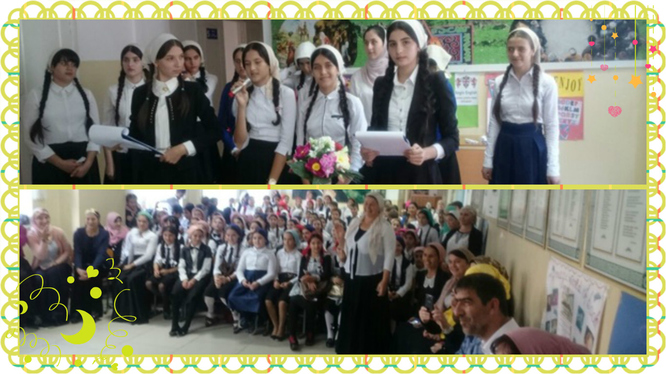 Ответственная за подготовку и проведение мероприятия была Ахматханова Х.А. 5 октября 2016 года в школе после уроков в оформленном зале состоялось мероприятие «Спасибо тебе, учитель!», где прозвучали стихи, песни для всех педагогов. Ведущие программы Мицаева Раяна и Бустаева Раяна поздравили всех учителей с наступающим праздником и передали слово для поздравления классной руководительнице Ахматхановой Х.А.. Ведущие адресовали слова поздравлений учителям - -предметникам и учителям, ушедшим из жизни, которые отдали жизнь за светлое будущее. Зрители отметили выступление солистов: Бустаева Тамила, Мицаева Раяна, Абдулхасанова Джамиля. Прозвучали песни-переделки на мотив «Электричка» и «Улыбка», «Ромашки спрятались». Учащиеся 8 классов выпустили красочные стенгазеты.