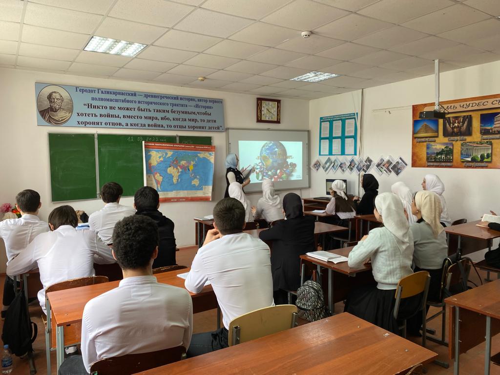 Провела учитель истории и обществознания Мицаева Мадина Ибрагимовна.