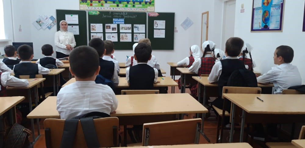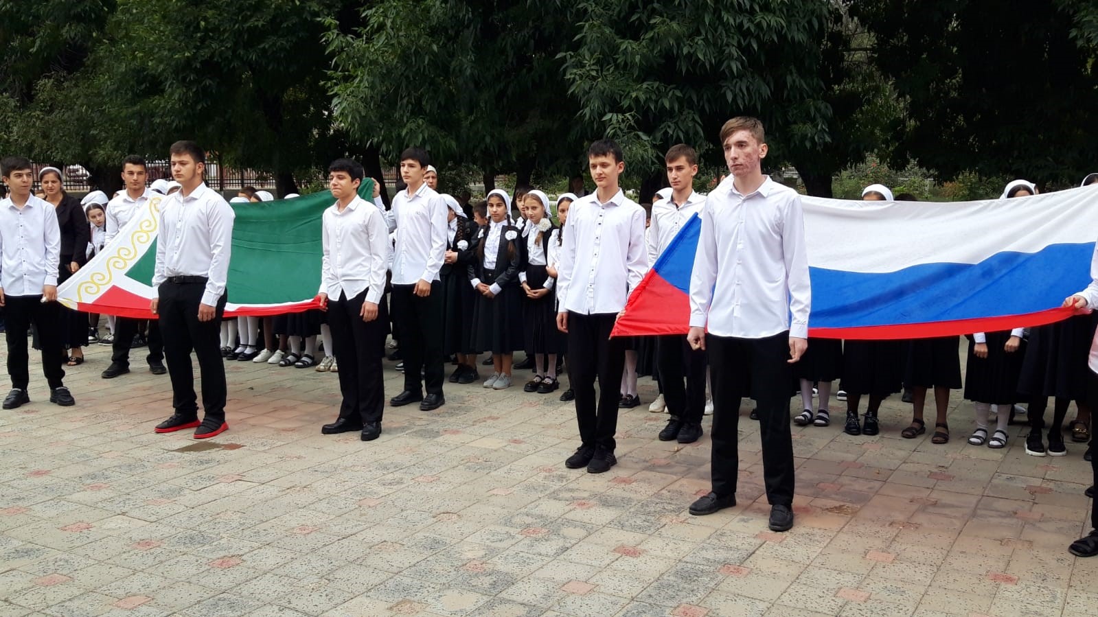 05.09.2022Поднятие Государственного флага Российской Федерации и Государственного флага Чеченской Республики и проведение занятий «Разговоры о важном»