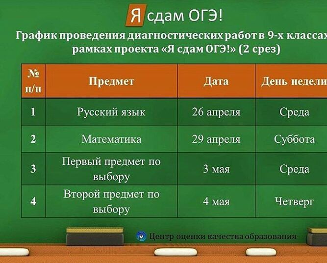 График проведения диагностических работ в 9-х классах в рамках проекта "Я сдам ОГЭ" (2-й срез)