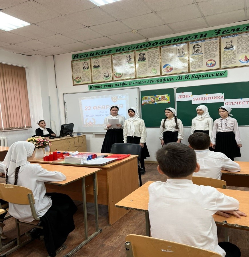 22 февраля в МБОУ «Нижне-Нойберская СШ №1 им.К.Л.Тепсуева активисты ЧРОО ЕДЮО «Юные Кадыровцы» с целью ознакомления обучающихся с историей праздника и поздравить будущих защитников Отечества; создания условия для улучшения микроклимата в коллективе; воспитания культуры общения, патриотизма, любви к Родине, уважения к Российской армии организовали и провели беседы о замечательном февральском празднике – о празднике 23 февраля.