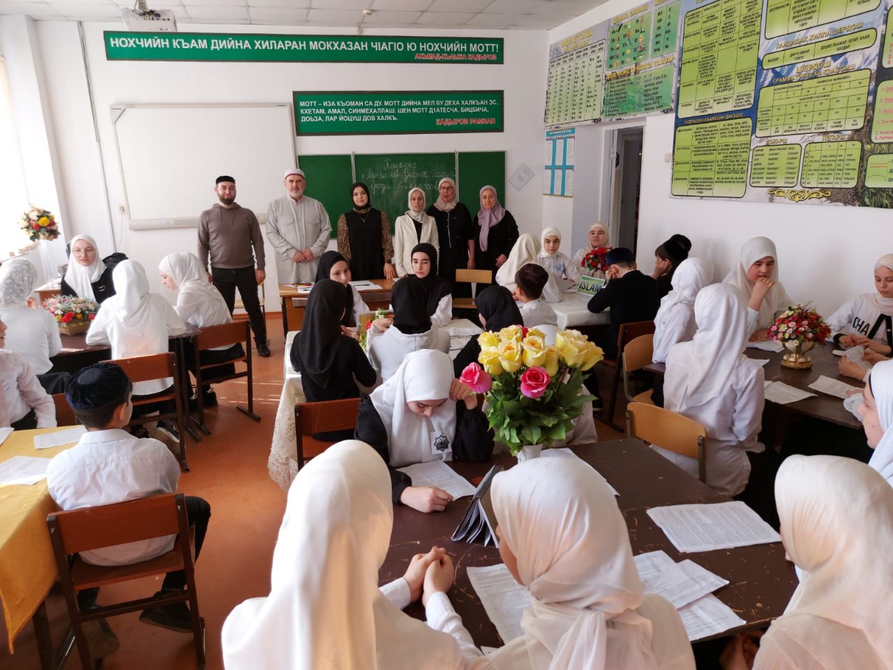 1-е место заняла команда учащихся 6г класса «99 имен Аллах1а», на втором месте команда учащихся 6д класса «Исламан некъ» и 3-е место досталось командам учащихся 6а класса «Коран» и 6е класса «Аллах1». Отрадно было, что в команде, которая заняла 2 место, была ученица (мигрантка), прибывшая Киргызстана.