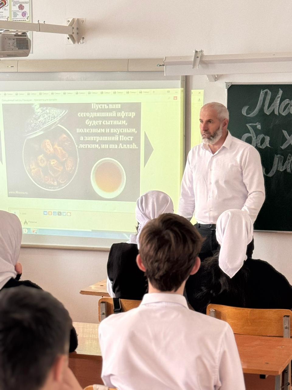Педагог-организатор ДНВ Магамедов И.И.провел беседу с учащимися 9-10 классов, посвященную наступлению священного месяца Рамадан. В ходе беседы были затронуты важные аспекты исламской культуры и традиций, связанные с этим месяцем поста и духовного очищения. Учащиеся получили информацию о значении Рамадана в мусульманском календаре, правилах соблюдения поста, традициях благотворительности и укрепления семейных связей. Беседа способствовала расширению культурного кругозора школьников и воспитанию уважения к религиозным чувствам представителей разных конфессий.